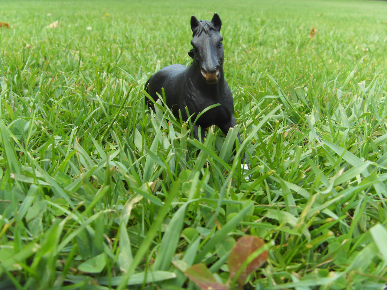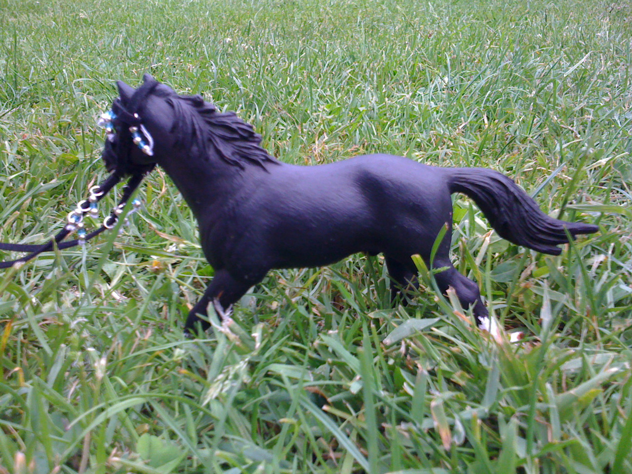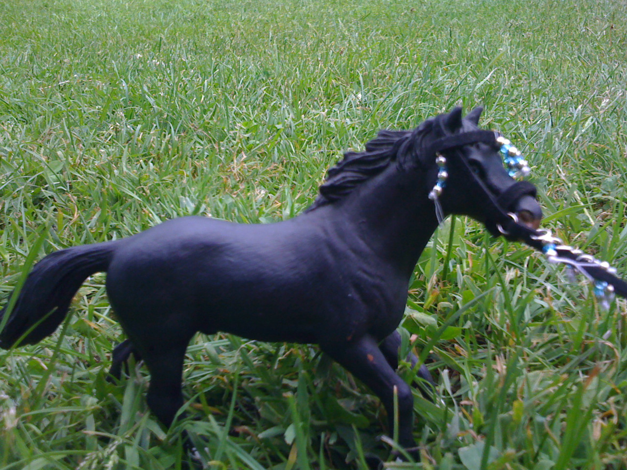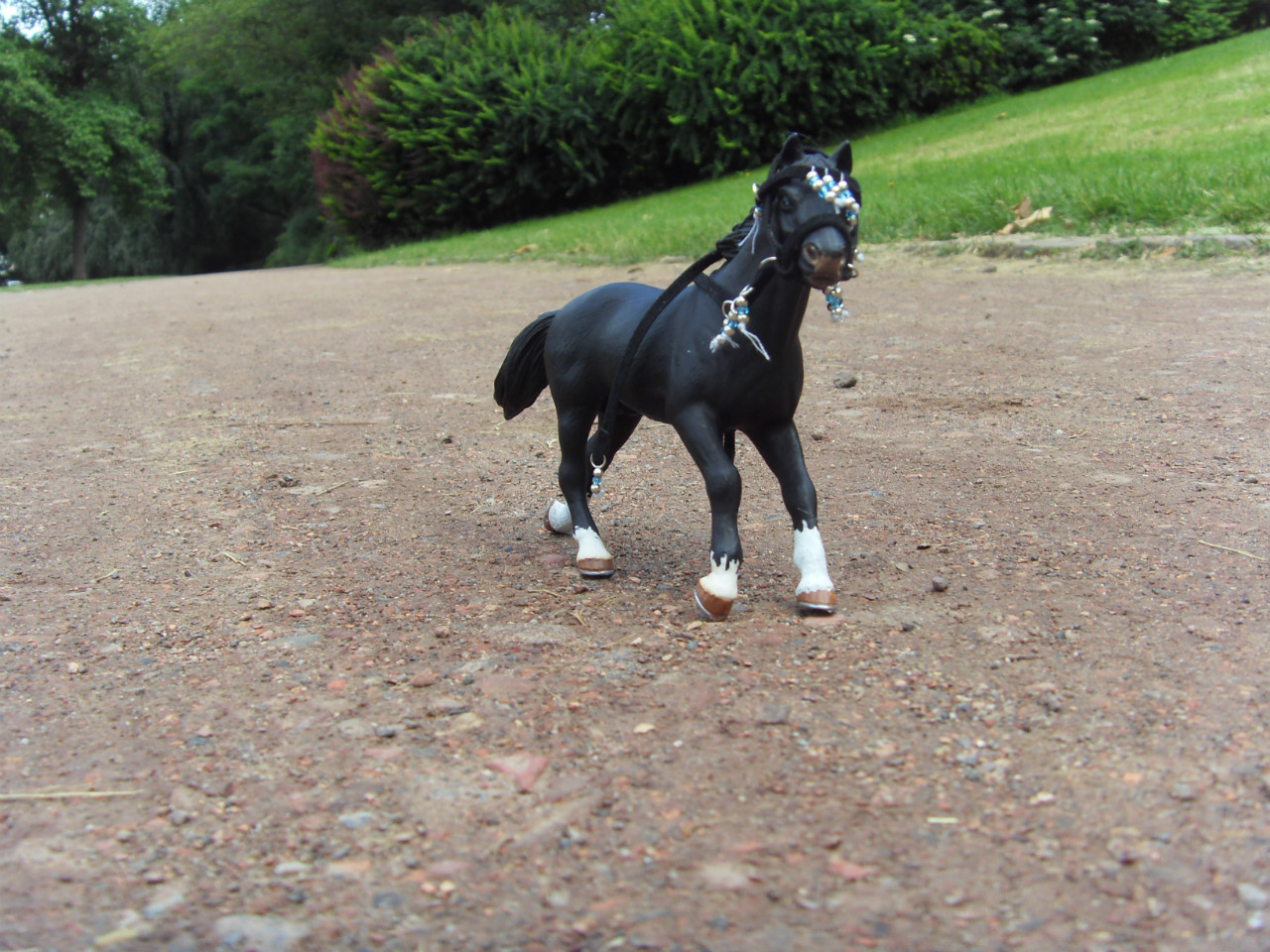 Unser Flitzebogen, Negro (auf Spanisch: ,,Schwarzer"), ist mit Acrylfarben bemalt und ist mit heißem Wasser zum Rennpferd gecustet worden. Er rennt für sein Leben gerne und hat auch schon ein paar Tuniere gewonnen! Sein Charakter passt dazu: er ist sehr stürmisch und kann keine Sekunde still stehen.